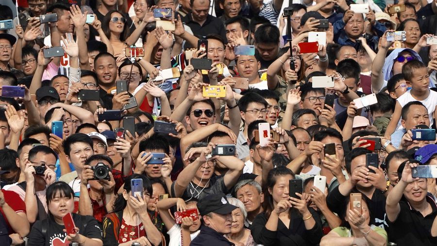 People watch a mass pageantry celebrating the 70th founding anniversary of the People's Republic of China (PRC) in Beijing, capital of China, Oct. 1, 2019. (Xinhua/Li Bo)■