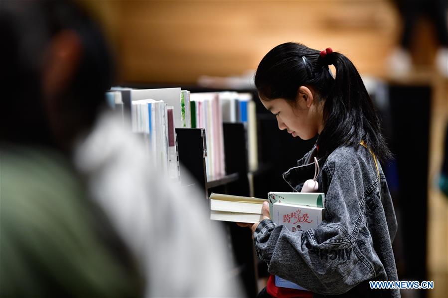 A girl reads at a bookstore in Xining, northwest China's Qinghai Province, Oct. 3, 2019. Many people choose to read at bookstores or libraries during the National Day holiday. (Xinhua/Zhang Long)