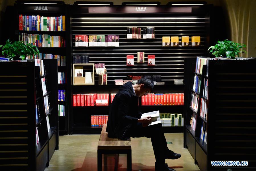 A citizen reads at a bookstore in Xining, northwest China's Qinghai Province, Oct. 3, 2019. Many people choose to read at bookstores or libraries during the National Day holiday. (Xinhua/Zhang Long)