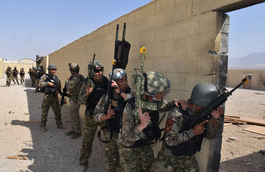 Afghan police officers take part in a military training in northern Balkh province of Afghanistan, Oct. 1, 2019. (Photo by Kawa Basharat/Xinhua)
