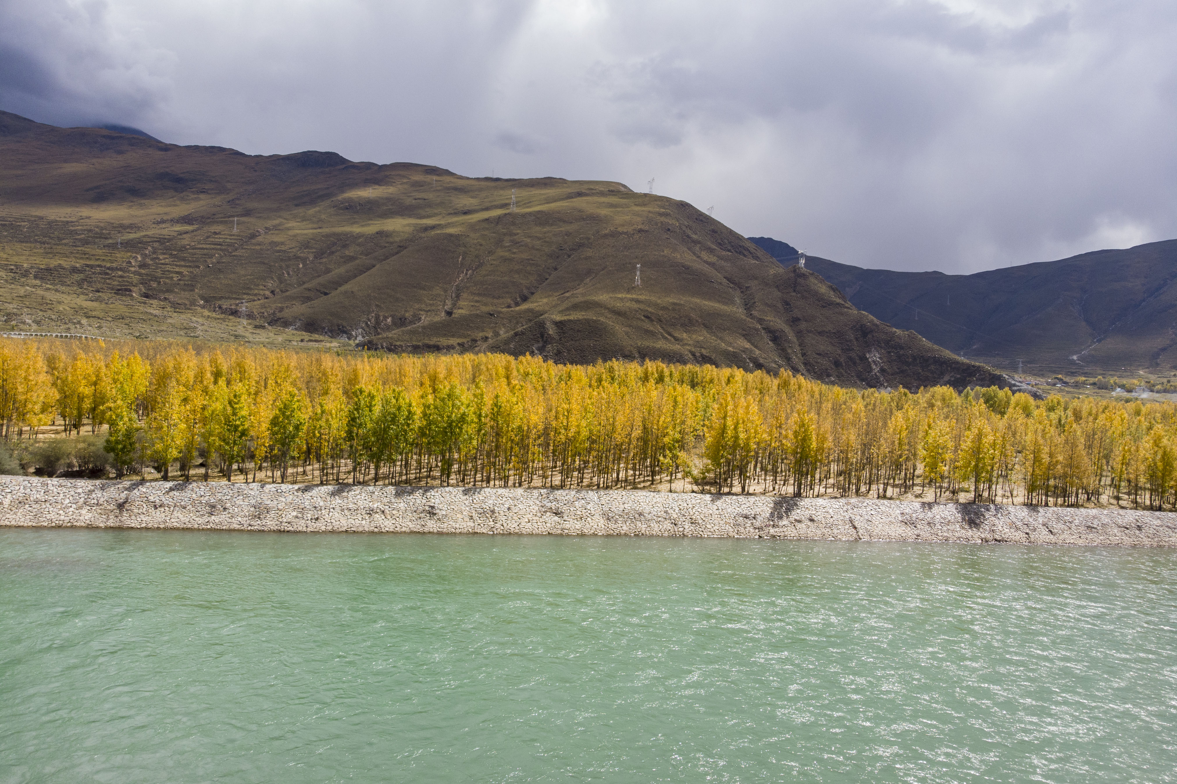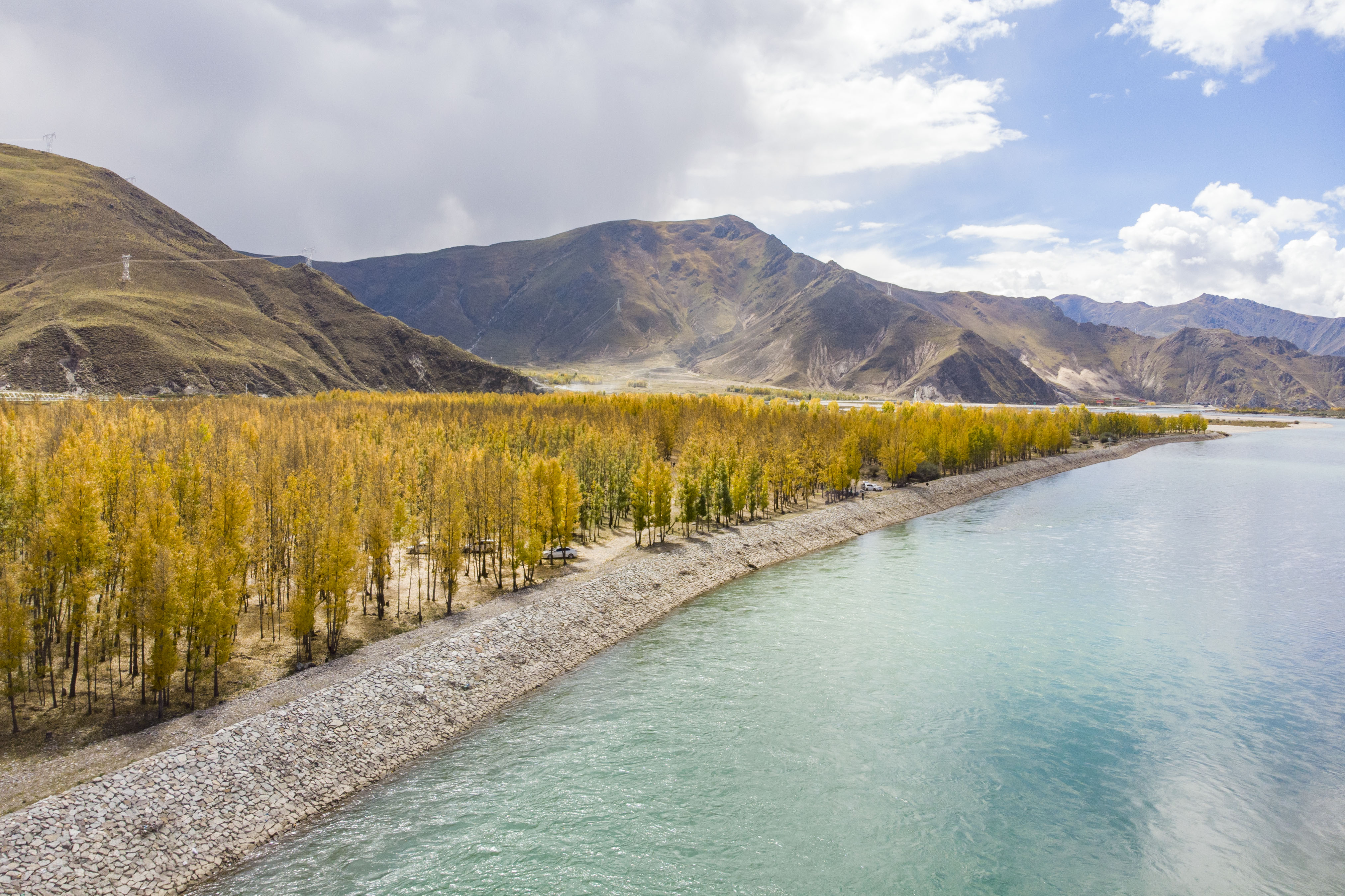 Photo taken on Oct. 7, 2019 shows woods on the south bank of Lhasa River in Lhasa, southwest China's Tibet Autonomous Region. (Xinhua/Zhang Rufeng)