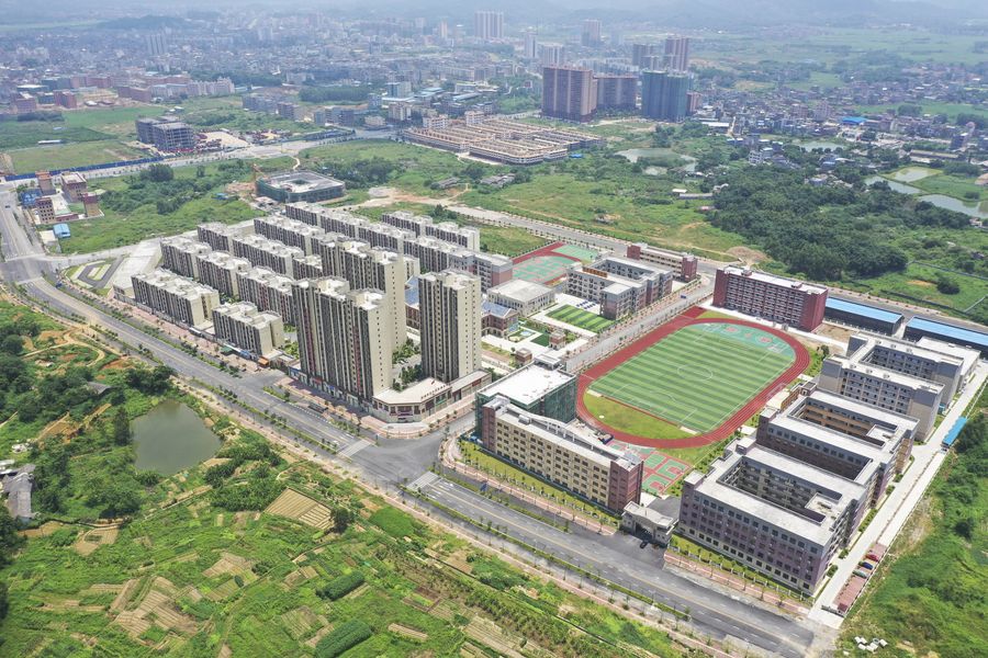 A view of poverty alleviation and relocation residential areas in Xingye County, south China's Guangxi Zhuang Autonomous Region, Aug. 14, 2019. (Xinhua/Cao Yiming)