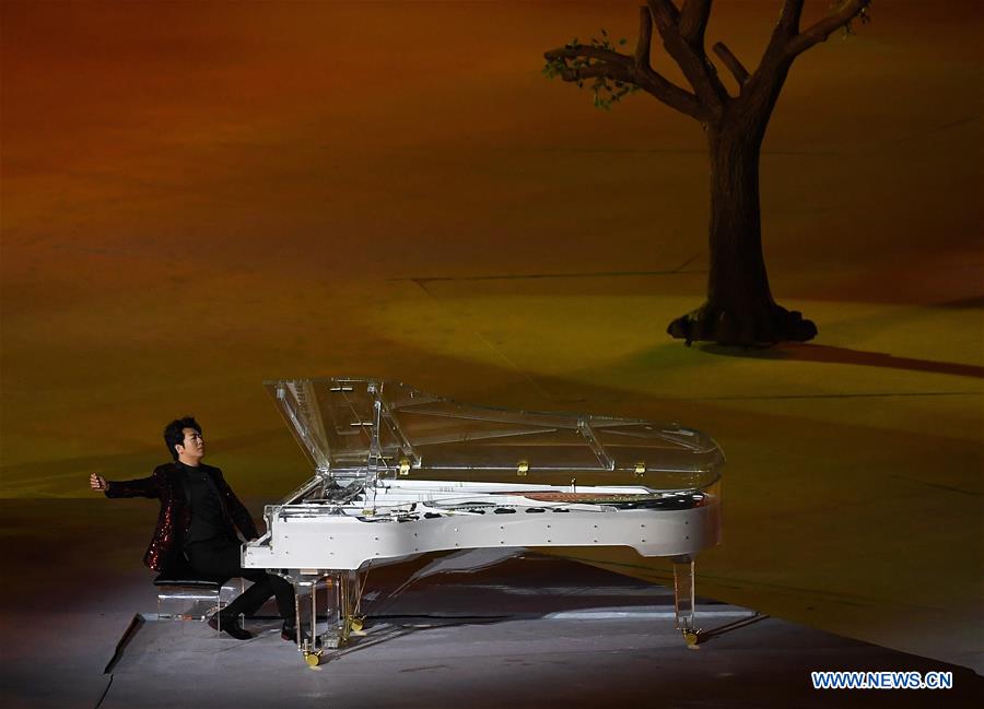 Pianist Lang Lang performs during the opening ceremony of the 7th CISM Military World Games in Wuhan, capital of central China's Hubei Province, Oct. 18, 2019. (Xinhua/Cheng Min)