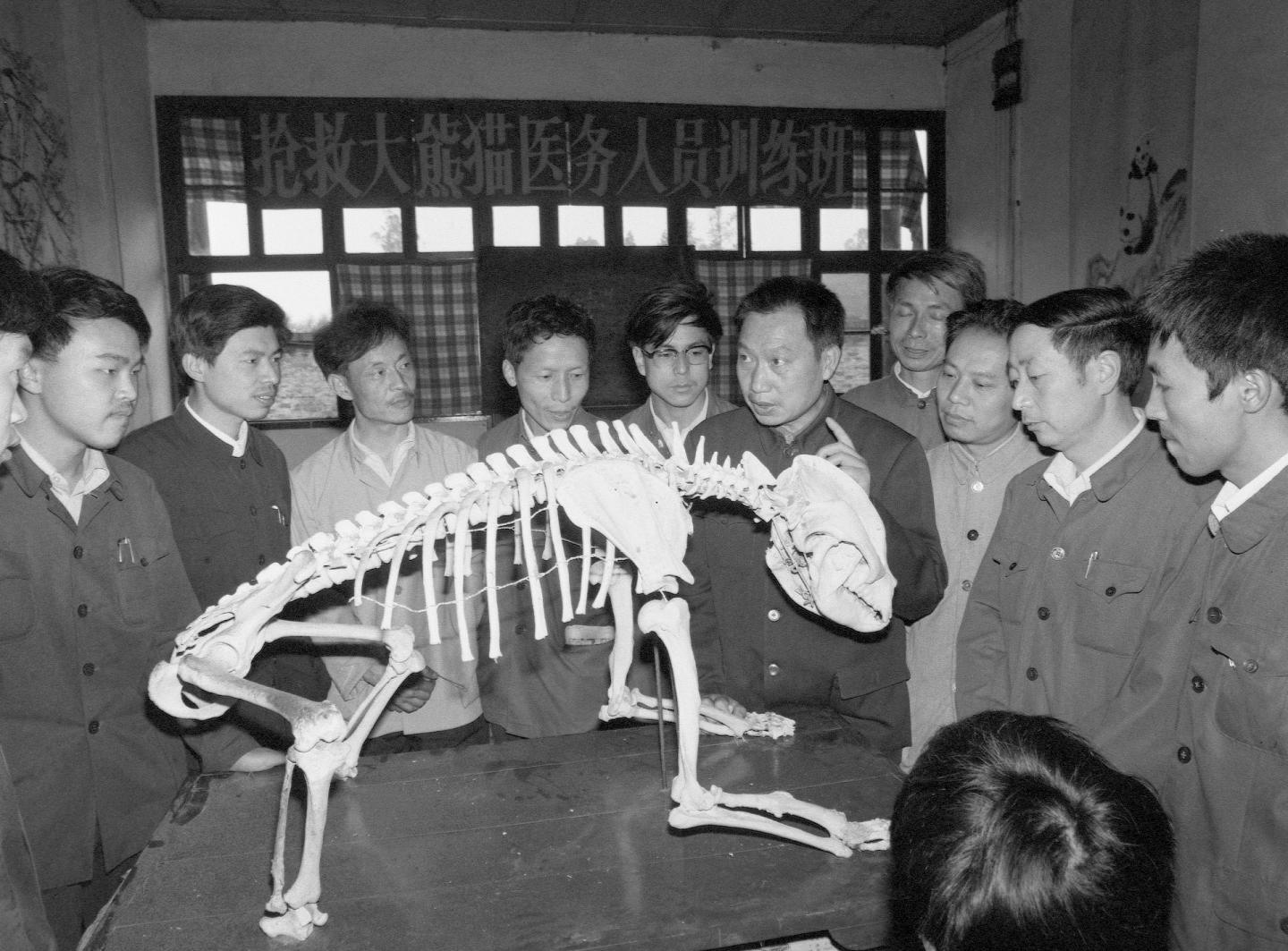Photo taken in 1984 shows Hu Jinchu (M) offers training to local doctors based in 17 counties and districts in the habitat of giant pandas so that they can give first-aid to pandas in need. (Xinhua/Jin Xuqi)