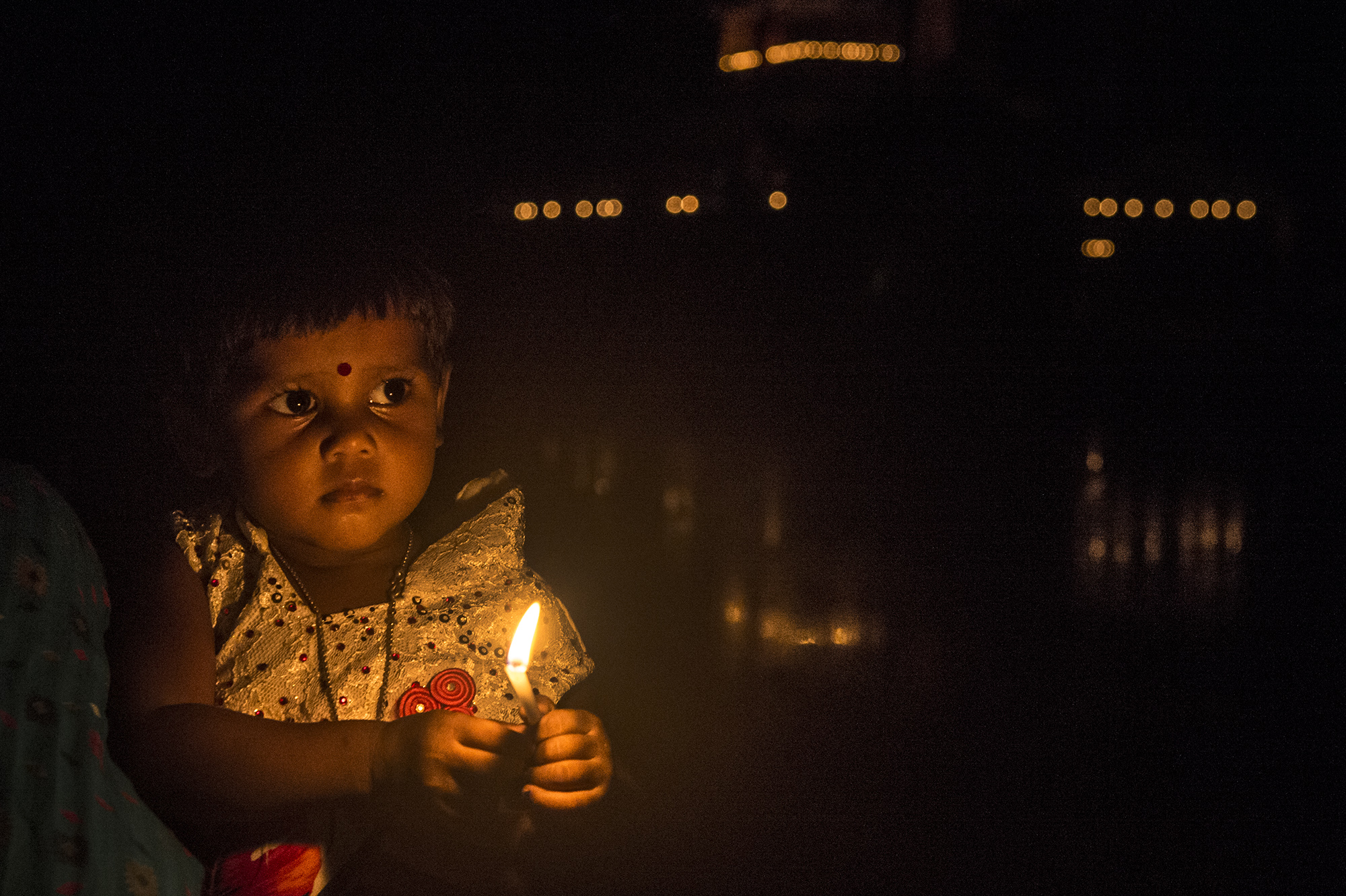 A child lights candles at a village some 160 km away from Kolkata, India, on Oct. 27, 2019. The festival of lights "Deepawali", or Diwali, is being celebrated across India on Sunday, with houses decked up with colourful lights and earthen lamps, and people exchanging sweets and bursting firecrackers. (Photo by Tumpa Mondal/Xinhua)