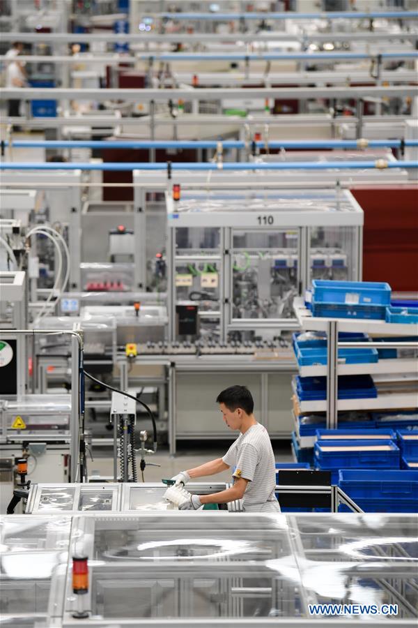 A staff member works at a production line of a plant of the Brose Taicang in Taicang, east China's Jiangsu Province, Oct. 30, 2019. Taicang has been making great efforts to improve business environment through facilitating administrative procedures for enterprises including registration, project approval and tax registration in recent years. As a result, Taicang has built economy and trade relations with over 160 countries and regions and attracted investment of over 1,500 foreign enterprises. (Xinhua/Li Bo)