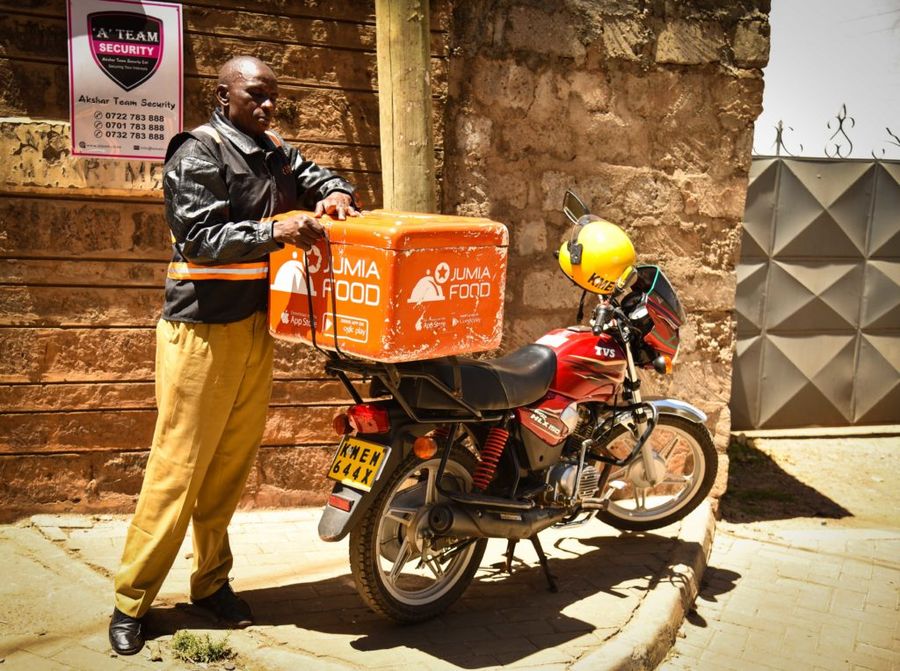 The photo shows Jumia's dispatch rider is delivering food to customers who order online. (Provided to Xinhua by Jumia)