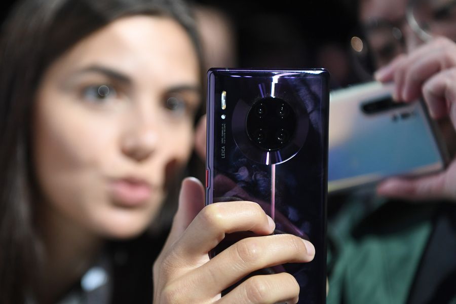 A visitor experiences Huawei's 5G Mate30 Pro at a press conference in Shenzhen, south China's Guangdong Province, Oct. 23, 2019. (Xinhua/Mao Siqian)