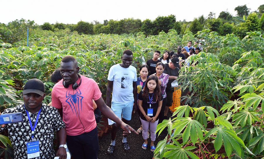 African learners visit a cassava field in Yanfeng Town, Haikou City of south China's Hainan Province, Sept. 9, 2019. (Xinhua/Guo Cheng)