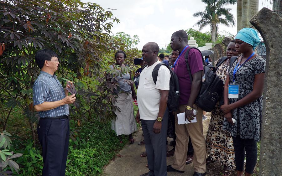 African learners visit a cassava germplasm resource base at the Danzhou branch of the Chinese Academy of Tropical Agricultural Sciences (CATAS) in Danzhou City, south China's Hainan Province, Sept. 11, 2018. (Xinhua/Wang Junfeng)