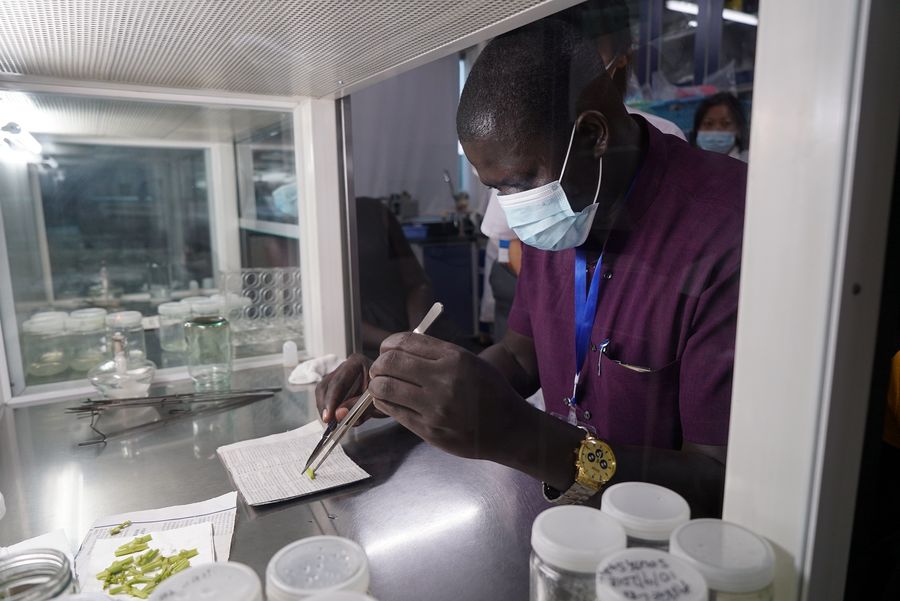 An african learner studies the technology of plant tissue cultivation at a laboratory of the Danzhou branch of the Chinese Academy of Tropical Agricultural Sciences (CATAS) in Danzhou City, south China's Hainan Province, Sept. 10, 2018. (Xinhua/Wang Junfeng)
