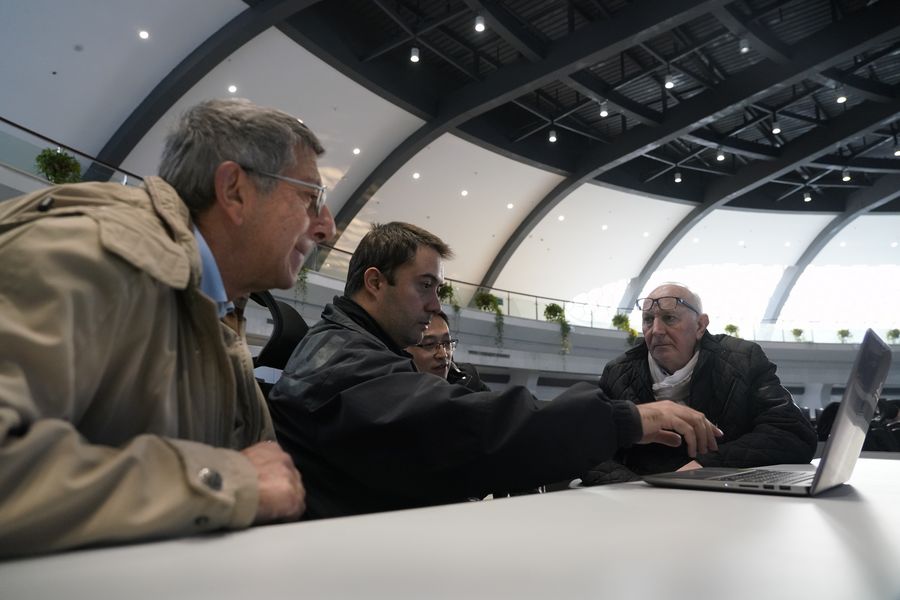 Three Italian scientists discuss with researchers of the Institute of Plasma Physics of the Chinese Academy of Sciences (ASIPP) at central control hall of the Experimental Advanced Superconducting Tokamak (EAST) in Hefei, east China's Anhui Province, Dec. 5, 2019. (Xinhua/Qu Yan)
