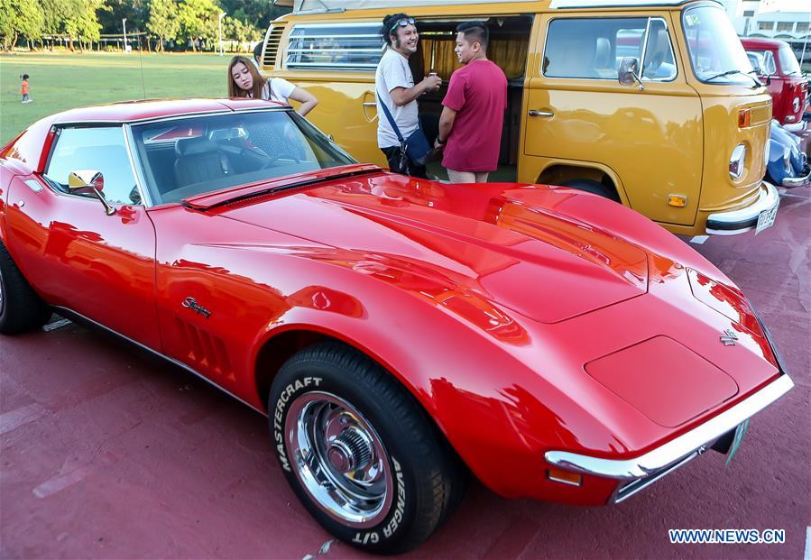 Car enthusiasts visit a vintage car exhibition in Quezon City, the Philippines, Dec. 29, 2019. (Xinhua/Rouelle Umali)