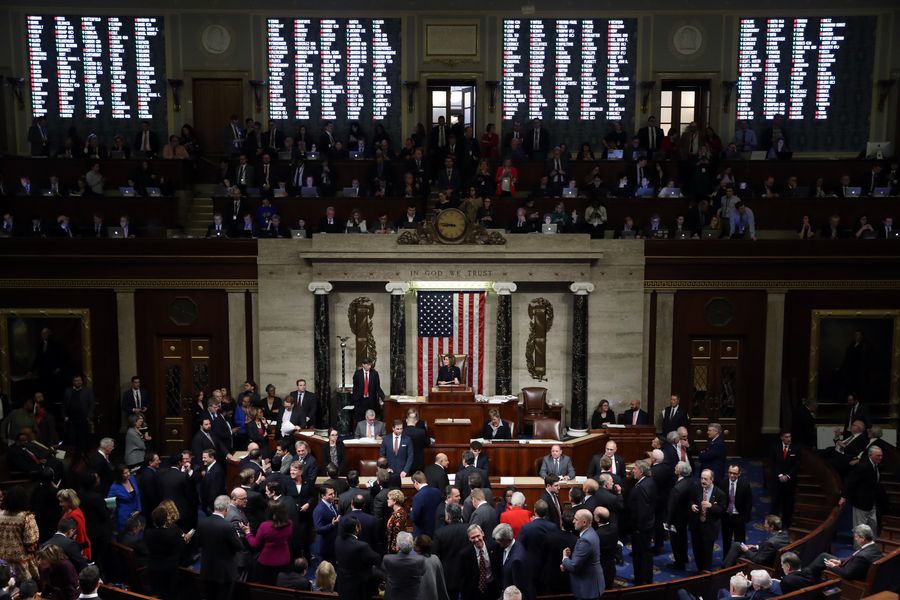 U.S. House members vote on two articles of impeachment against President Donald Trump in Washington D.C. Dec. 18, 2019. (Chip Somodevilla/Pool via Xinhua)