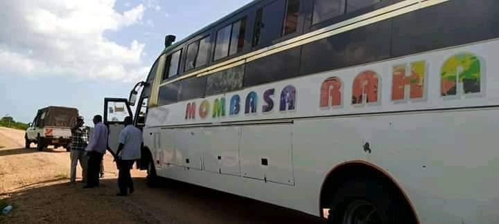 A bus was attacked by suspected al-Shabab militants in the coastal county of Lamu, Kenya, on Jan. 2, 2019. (Xinhua/Chris Mgidu)