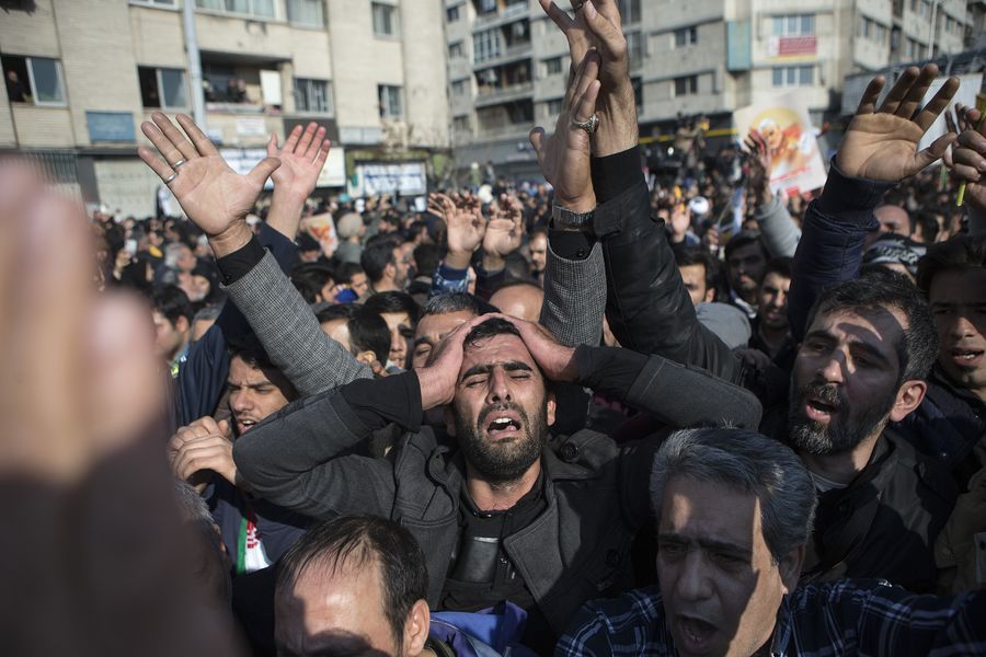People mourn during the funeral ceremony of Iranian general Qassem Soleimani in Tehran, Iran, Jan. 6, 2020. (Photo by Ahmad Halabisaz/Xinhua)