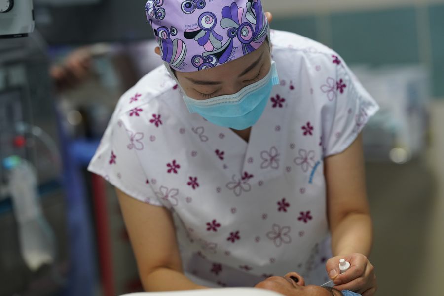 A nurse prepares for an eye surgery at the Hulhumale Hospital, Maldives, Jan. 9, 2020. (Xinhua/Tang Lu)