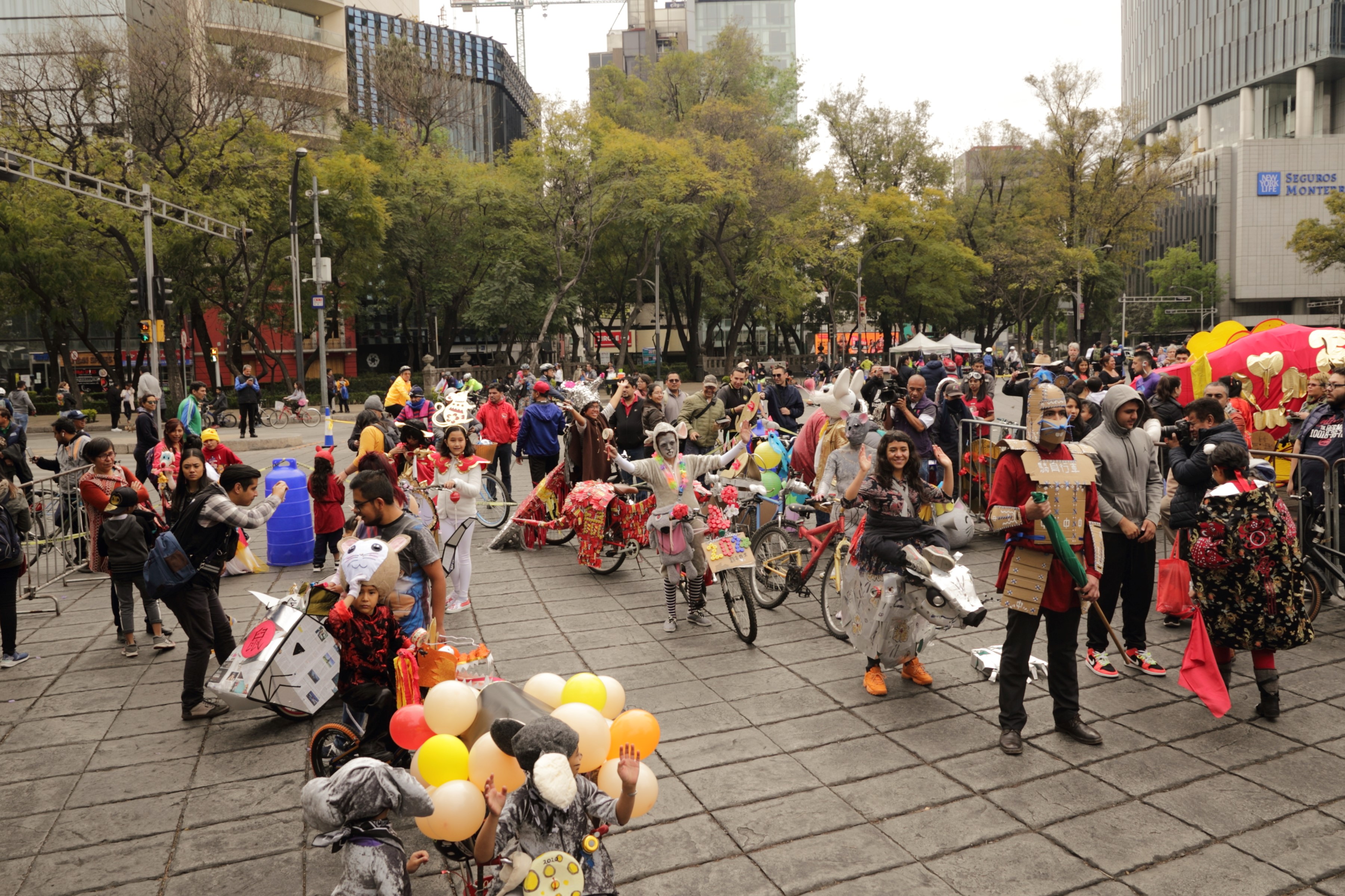 People participate in a bicycle zodiac decoration competition in Mexico City, Mexico, Jan. 19, 2020. (Photo provided by China Cultural Center in Mexico)■