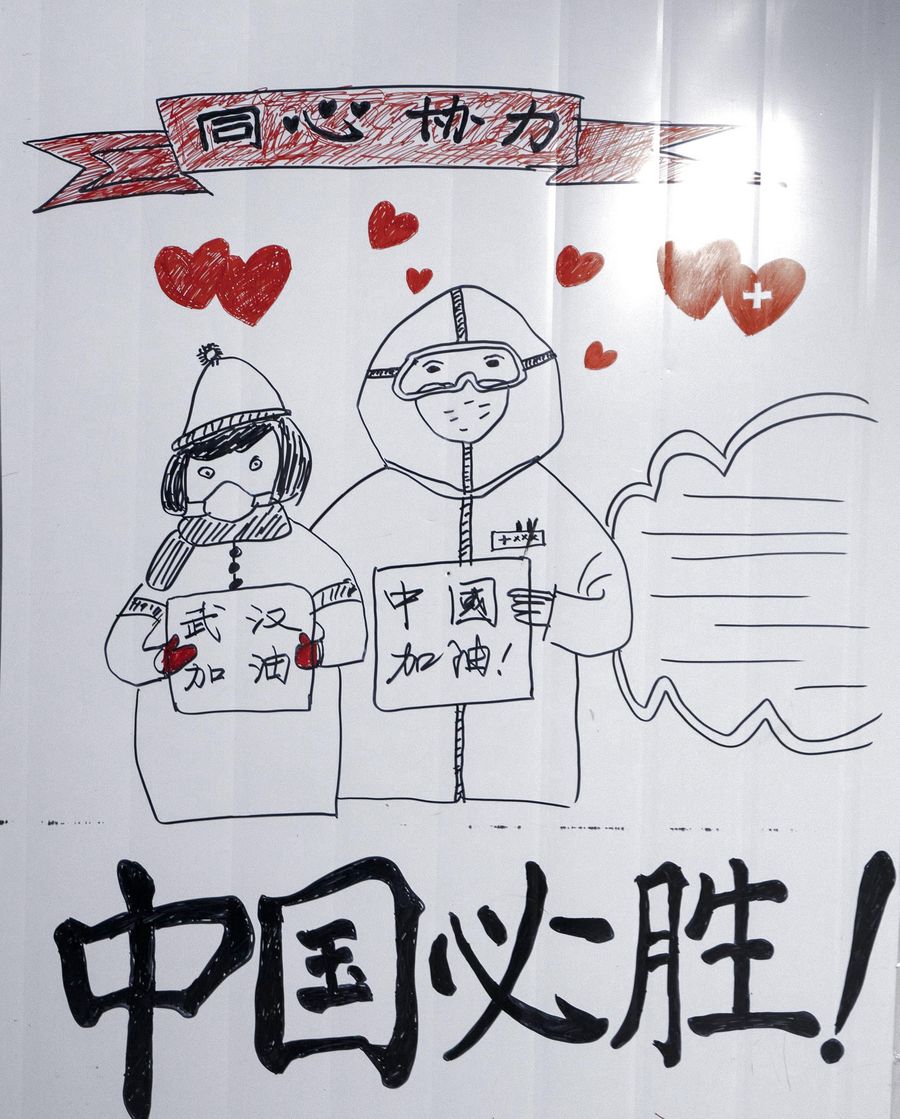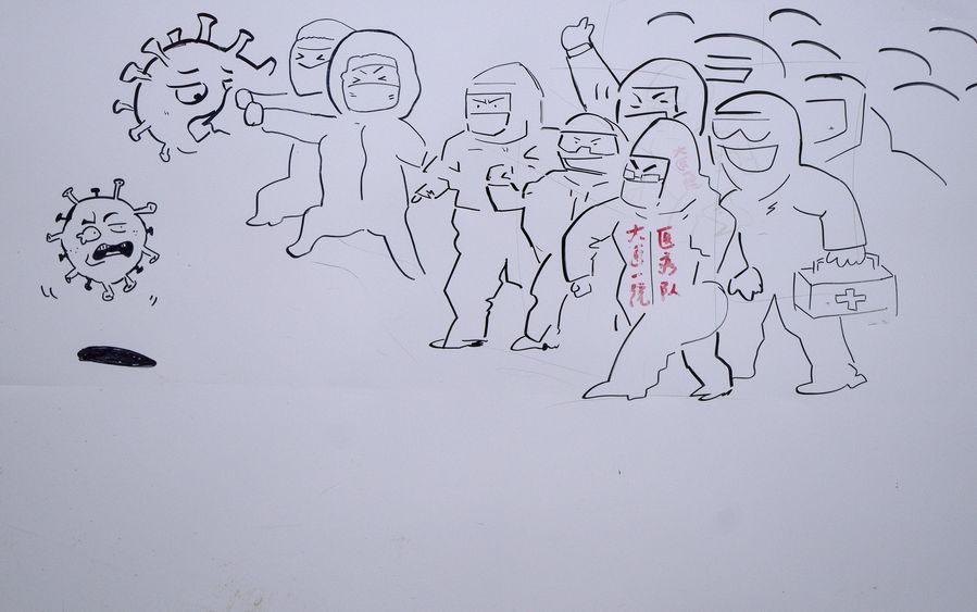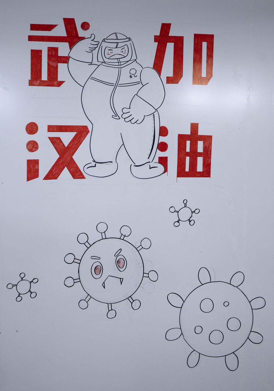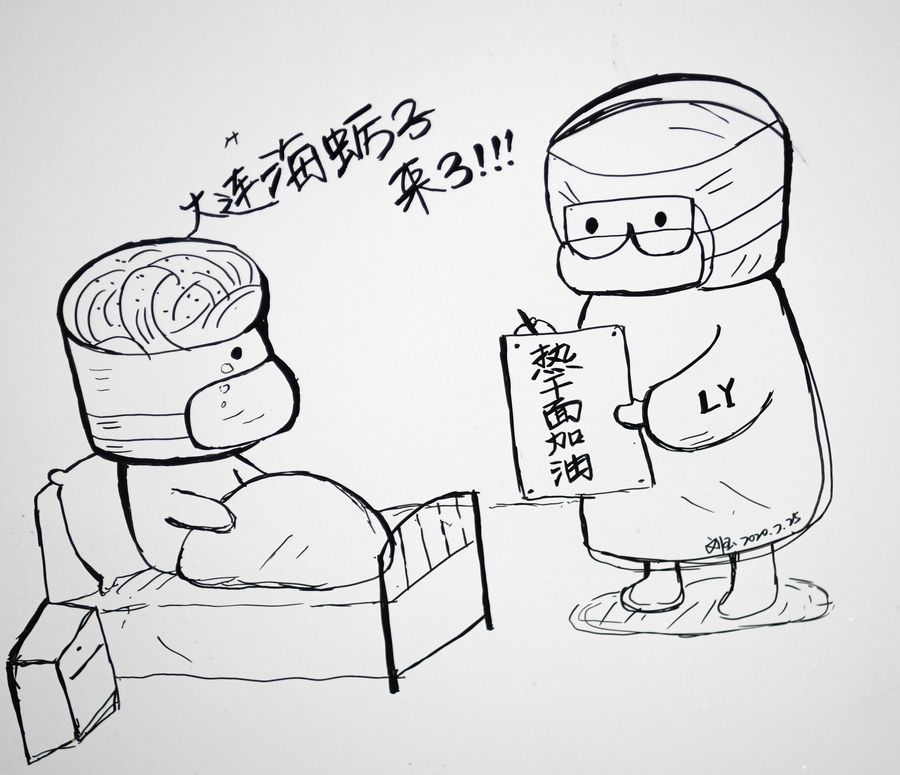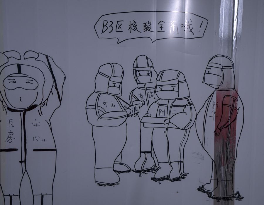 "I started to draw a cartoon on the corridor wall of ward A2 in Leishenshan. That helped me relieve pressure after a day's work," said the nurse. "More and more colleagues and patients come to see those pictures. I never expect them to become so popular."