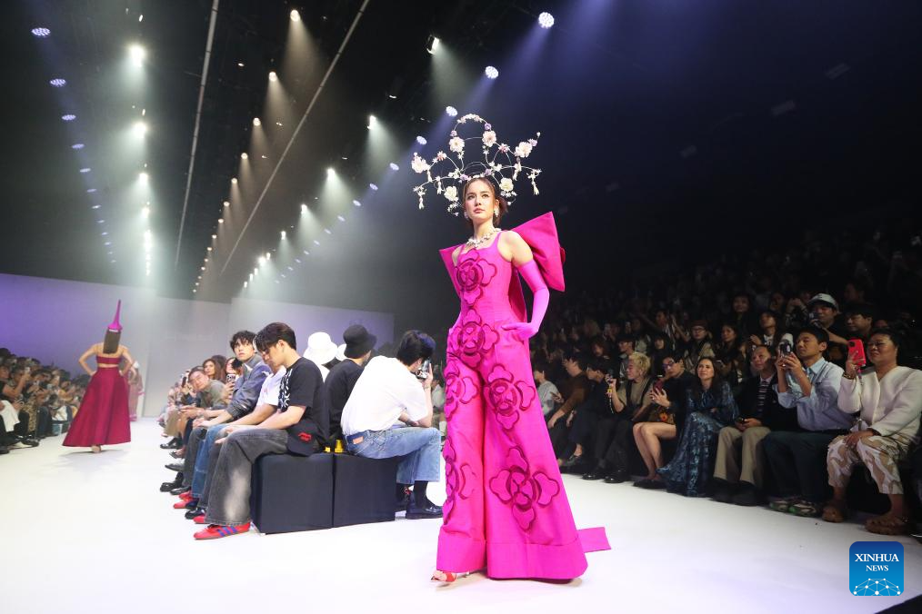 A model presents creations during the Bangkok International Fashion Week in Bangkok, Thailand, on Oct. 16, 2025. Running from Oct. 16 to 19, the Bangkok International Fashion Week is an important platform for Thai designers to showcase their designs and creativity. (Xinhua/Rachen Sageamsak)