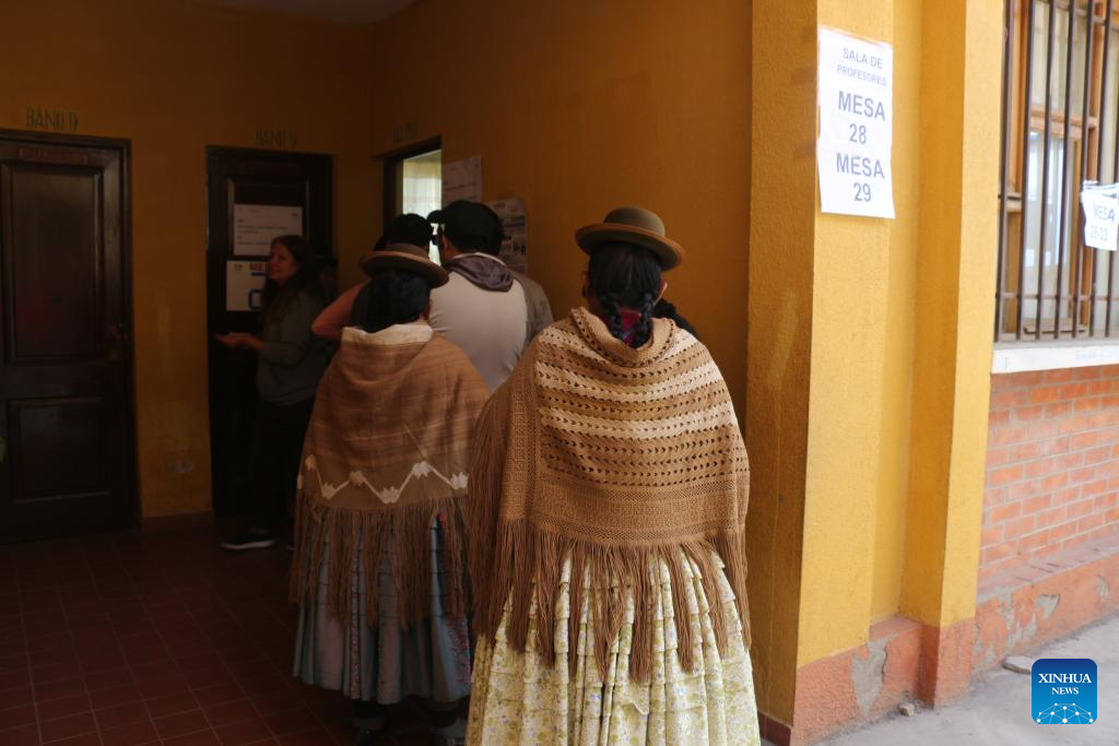 People queue to cast their ballots in La Paz, Bolivia, Oct. 19, 2025. Rodrigo Paz Pereira, 58, won the presidential runoff election in Bolivia on Sunday, according to the quick count of the Preliminary Results System of the Supreme Electoral Tribunal (TSE). (Xinhua/He Bing)