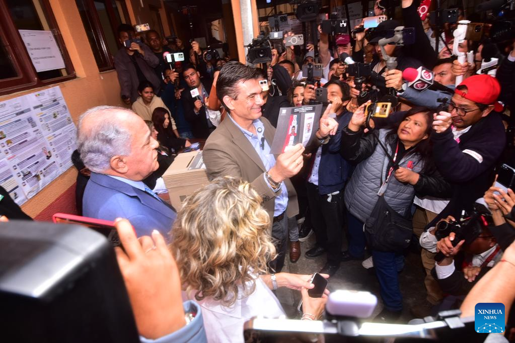 (251020) -- TARIJA, Oct. 20, 2025 (Xinhua) -- Rodrigo Paz Pereira casts his ballot at a polling station in Tarija, Bolivia, Oct. 19, 2025. Rodrigo Paz Pereira, 58, won the presidential runoff election in Bolivia on Sunday, according to the quick count of the Preliminary Results System of the Supreme Electoral Tribunal (TSE). (Photo by Reynaldo Vargas/Xinhua)