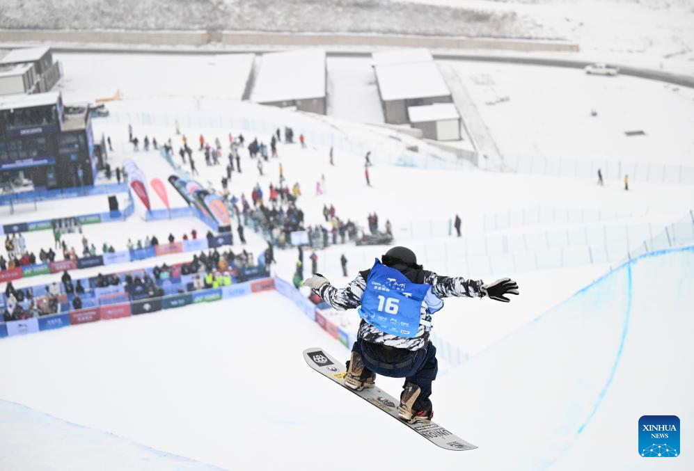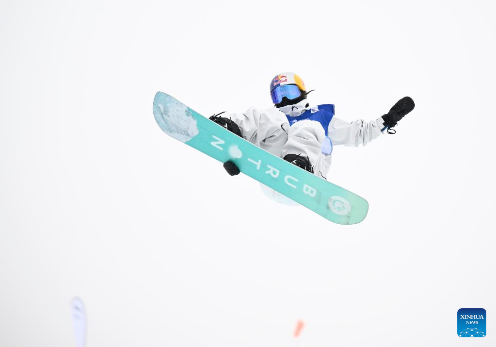 Liu Jiayu of China competes during the women's snowboard halfpipe final of FIS Snowboard World Cup 2025 in Zhangjiakou, north China's Hebei Province, Dec. 12, 2025. (Xinhua/Wu Huiwo)