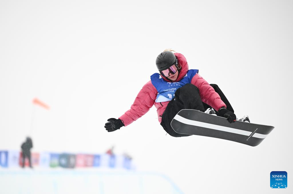 Wu Shaotong of China competes during the women's snowboard halfpipe final of FIS Snowboard World Cup 2025 in Zhangjiakou, north China's Hebei Province, Dec. 12, 2025. (Xinhua/Wu Huiwo)