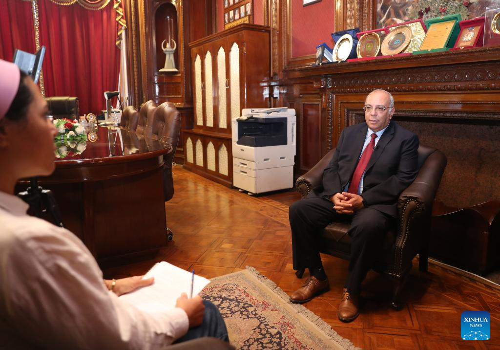 Hosam Shawky, president of the Egypt's Desert Research Center (DRC), receives an interview with Xinhua in Cairo, Egypt, Oct. 19, 2025. (Xinhua/Sui Xiankai)