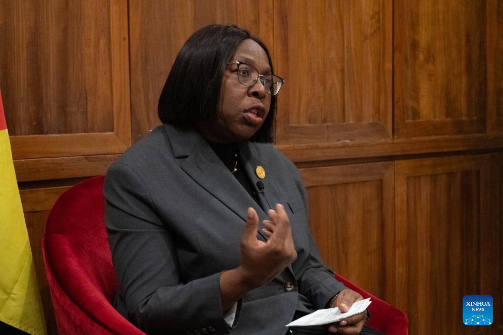 Prime Minister of Mozambique Maria Benvinda Delfina Levi receives an interview with Xinhua during the Global Leaders' Meeting on Women in Beijing, capital of China, Oct. 14, 2025. (Xinhua/Zhao Wangxuan)