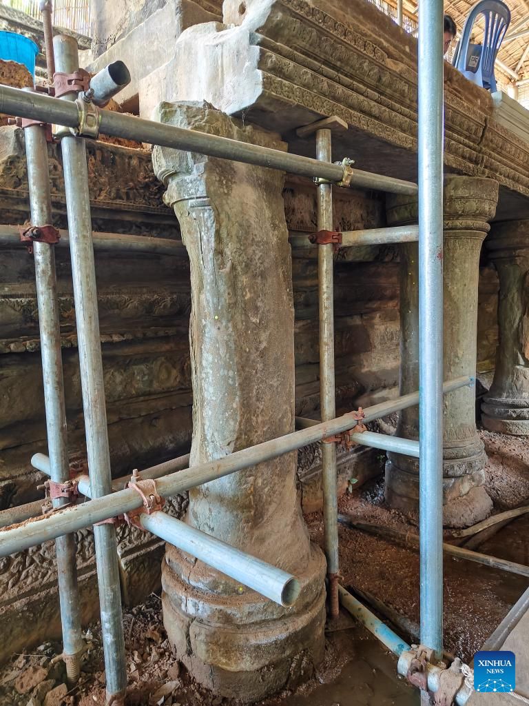 PHNOM PENH, Oct. 21 (Xinhua) -- Archaeologists have been restoring the ruined front terrace of the Banteay Samre Temple in Cambodia's Angkor Archaeological Park, the APSARA National Authority (ANA) said in a news release on Tuesday.