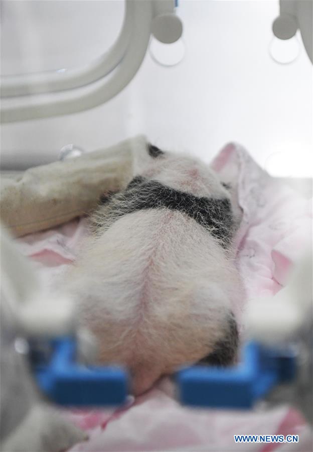 Photo taken on July 16, 2019 shows a newly born panda cub at a zoo in southwest China's Chongqing Municipality. Two giant pandas in a zoo in Chongqing gave birth to two pairs of twins on June 23. Female panda Lanxiang, 17, gave birth to a pair of male cubs in the wee hours of June 23, weighing 167 and 115 grams, respectively. Another female panda, Mangzai, gave birth to a pair of female cubs in the afternoon on the same day, measuring 142 and 160 grams in weight, respectively. (Xinhua/Wang Quanchao)