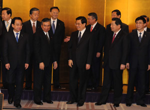 Visiting Chinese President Hu Jintao met on Friday evening with Osaka Prefecture Governor Toru Hashimoto and local government officials of Japan's Kansai region.