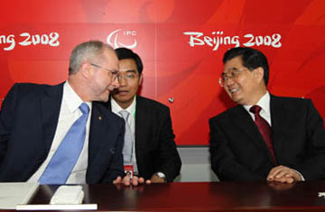 | Hu, Craven attend Beijing Paralympics closing ceremony | | President Hu Jintao talks to International Paralympic Committee President Craven during the closing ceremony of the Beijing Paralympic Games. |