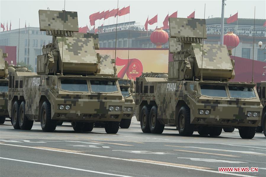 A formation of air defense missiles takes part in a military parade during the celebrations marking the 70th anniversary of the founding of the People's Republic of China (PRC) in Beijing, capital of China, Oct. 1, 2019. (Xinhua/Chen Jianli)