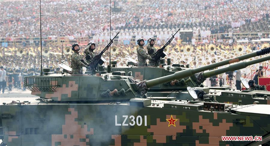 A formation of amphibious assault vehicles takes part in a grand military parade celebrating the 70th anniversary of the founding of the People's Republic of China in Beijing, capital of China, Oct. 1, 2019. (Xinhua/Yin Gang)