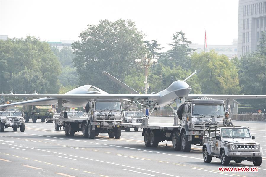 A formation of unmanned combat armaments takes part in a military parade celebrating the 70th founding anniversary of the People's Republic of China (PRC) in Beijing, capital of China, Oct. 1, 2019. (Xinhua/Zhang Guojun)