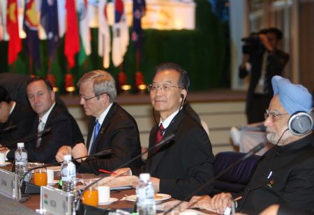 Chinese Premier Wen Jiabao on Sunday exchanged views with leaders of East Asia at the 4th East Asia Summit on regional cooperation and other issues of common concern.