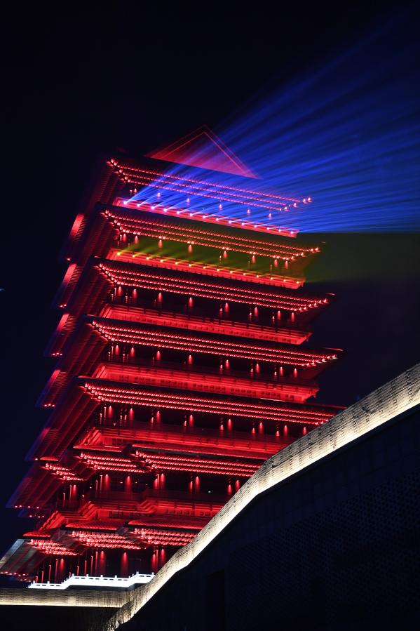 元旦期間,位于甘肅省蘭州市七里河區的蘭州黃河樓景區上演《大有蘭州》光影秀,表演分為“源之大河”“金之大城”“民之大韻”“蘭之大州”四個主題篇章,讓游客在黃河之濱感悟黃河文化。