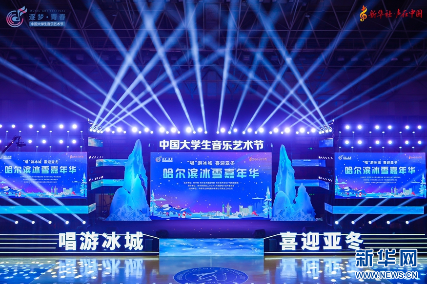 新华网哈尔滨12月28日电 “2023逐梦·青春丨声在中国·中国大学生音乐艺术节·哈尔滨冰雪嘉年华”活动于12月28日晚在黑龙江大学体育馆正式启幕。中国大学生音乐艺术节全国十强歌手、省内高校优秀校园歌手同台放歌,“唱”游冰城、喜迎亚冬,为冬日哈尔滨注入青春与激情。