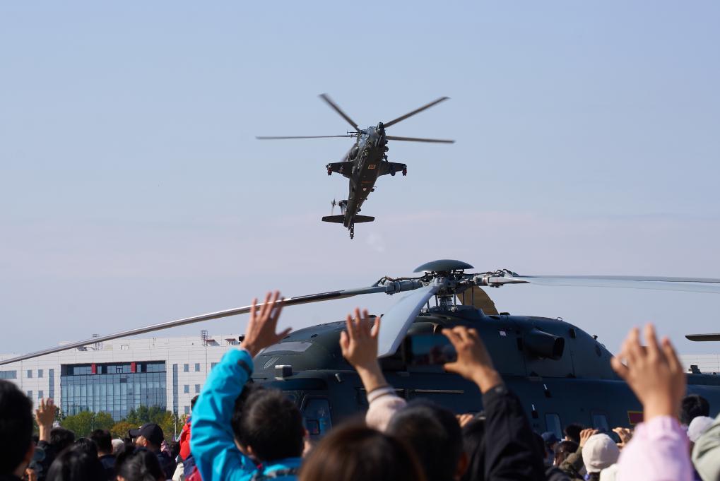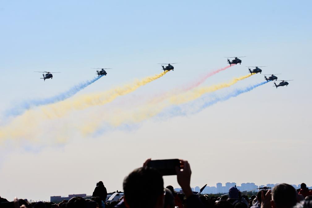 10月18日,第七届中国天津国际直升机博览会迎来公众开放日,陆军“风雷”飞行表演队进行特技飞行表演,为现场观众献上一场视觉盛宴。