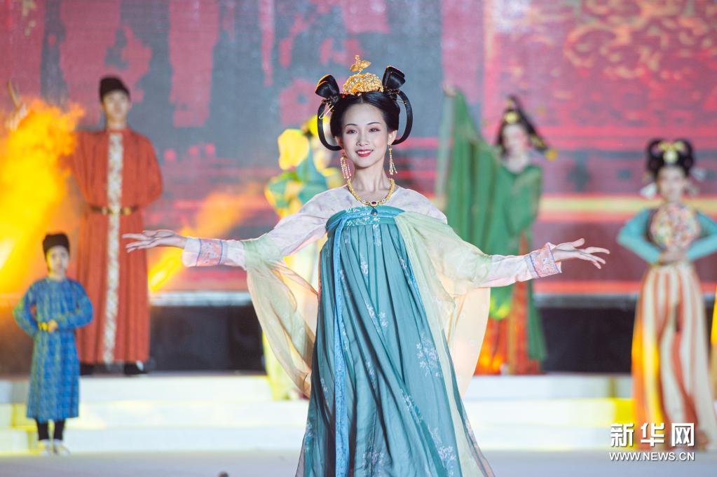 6月23日,模特在杭州亞運服飾秀上展示服裝。新華社記者 江漢 攝