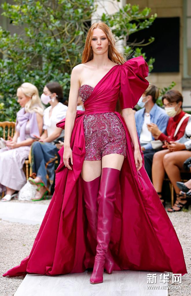 7月7日,模特在法國巴黎高級(jí)定制時(shí)裝周上展示Zuhair Murad品牌2021/2022秋冬新品。