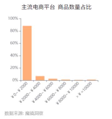 从商品供给看,电商平台 “0~2000元” 价格带的商品数量占比居首位,表明入门级是行业供给的 “基本盘”,既契合大众对入门级产品的基本需求,也体现品牌以高性价比抢占市场的策略倾斜。