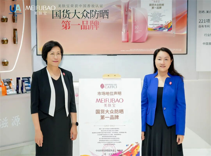 9月25日在CAME现场正式荣膺“国货大众防晒第一品牌”称号。展会期间,美肤宝重点展示独家“素颜防晒衣”技术,内含3重碧光微珠,一抹实现防晒、提亮、修色,协同8年独家“姜根防晒增效技术”,实现了仅使用5种环境友好型防晒剂,总添加量控制在18%的情况下,防晒指数达到SPF50+ PA++++,12小时高倍强防晒,8秒修颜好肤色,彰显品牌的卓越实力,以科技力重新定义防晒新高度。