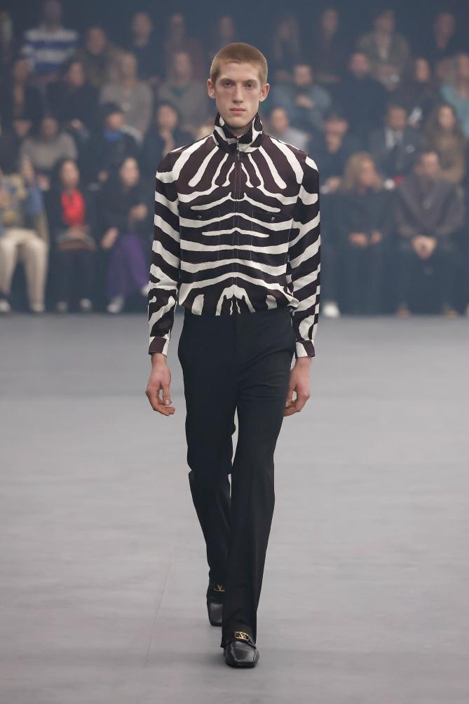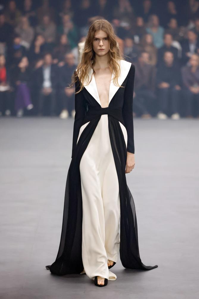 10月5日,模特在法国巴黎时装周上展示华伦天奴品牌2026春夏新品成衣。
