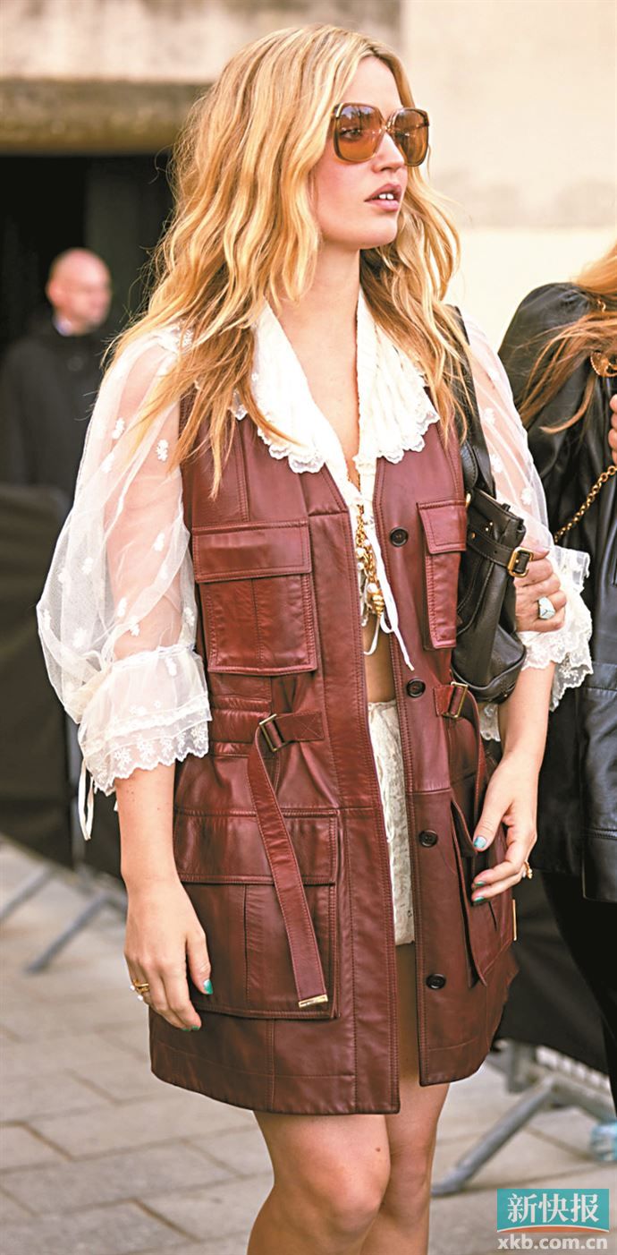 此外,薄纱单品既可做内搭延续夏日轻巧,又可外穿增加穿搭层次,透视感较强的薄纱单品已足够吸睛,内搭尽量选简约款式,避免过于复杂的图案抢了风头。内搭颜色与薄纱颜色相近或形成柔和对比会显得更高级,无论内搭还是外穿都可用腰带强调腰线,优化身材比例的同时也增加造型感。