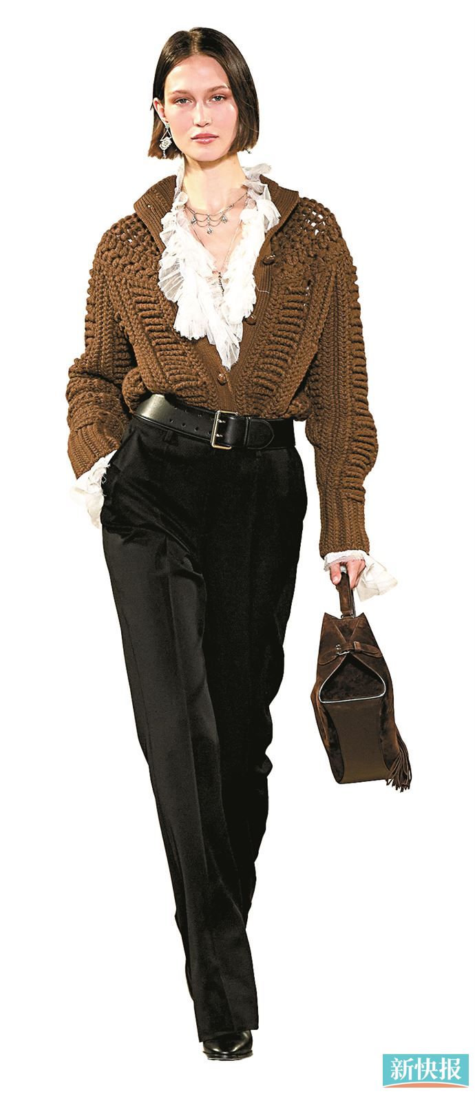独特领口设计让薄纱成为秋冬造型叠穿中的点睛之笔。
