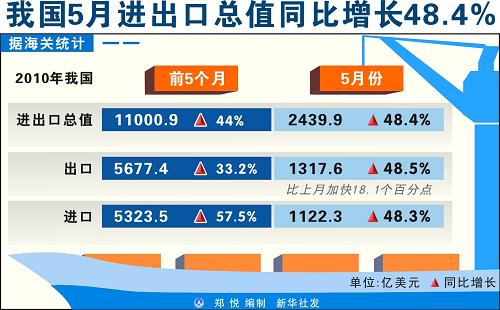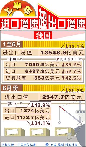 圖表:2010年1-6月份我國進(jìn)出口總額達(dá)13549億美元
