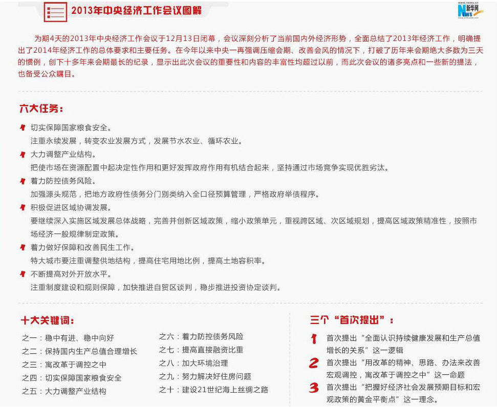 [2013年中國經(jīng)濟穩(wěn)進好 調(diào)控方式創(chuàng)新是主因] [2013年GDP是一個沒有副作用的增長] ["三產(chǎn)"首次超"二產(chǎn)"] [28省份GDP總量超全國2萬億] [外媒:2014是中國經(jīng)濟改革成敗攸關(guān)一年] [收入分配改革迫在眉睫]